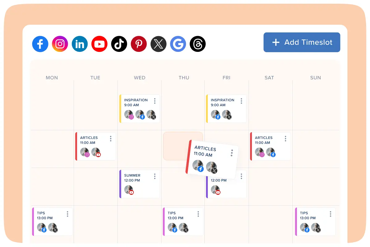 Draft your post once and publish it across all your connected social profiles simultaneously, or customize the text, images, links, and even timings for each platform to match their unique audience and format requirements. Plus, when you need to make changes, edit all platform versions simultaneously from one interface. No more hunting down separate posts to update each one individually.